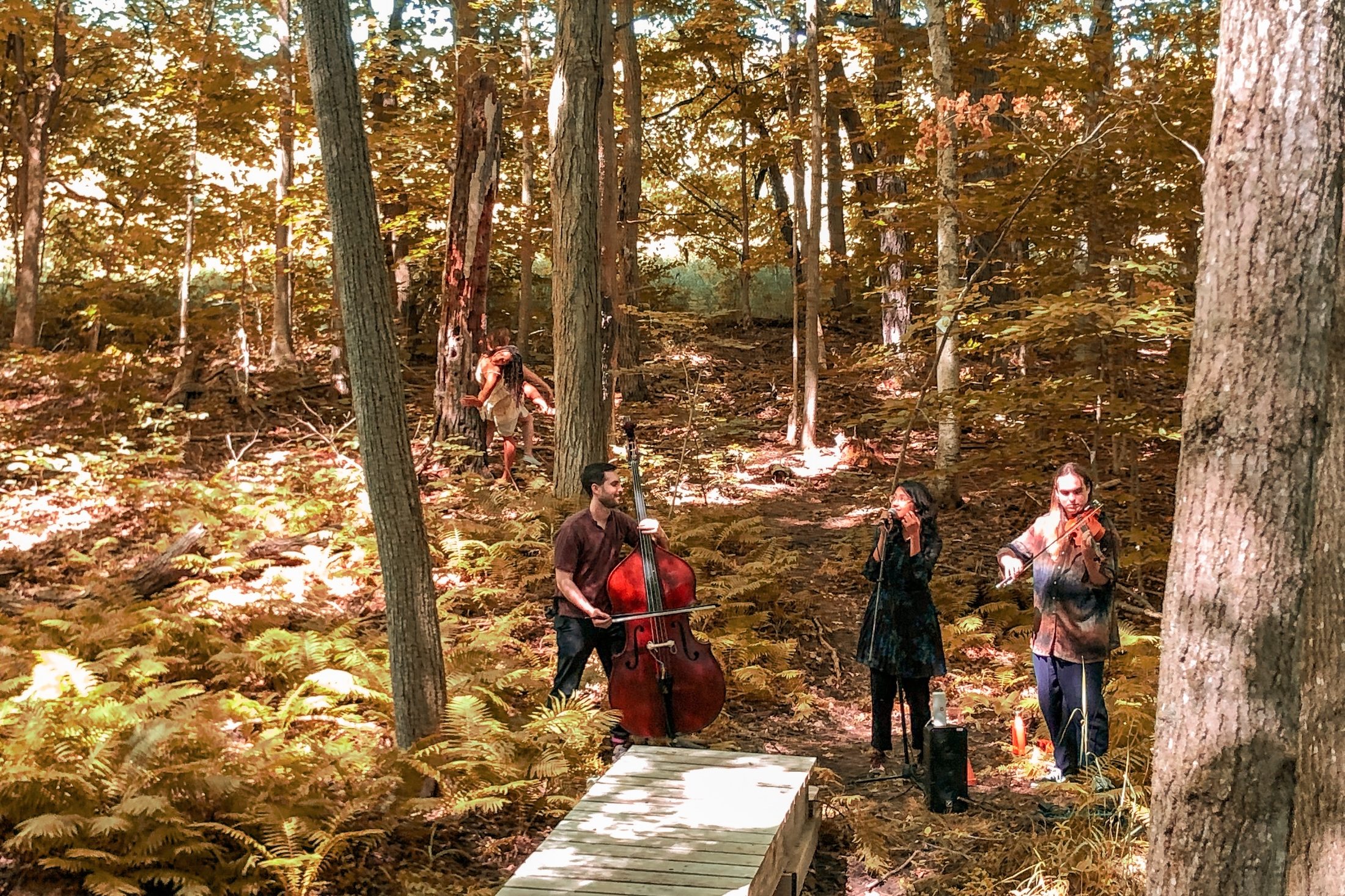 Once the naturalist has shared their ecological insight, the artistic portion resumes: “then dancers appear and they take us to another spot at the forest by a stream. There is a group of musicians there and they play about a half-hour concert with some interactive elements. It’s a full sensory experience,” Bennett adds.